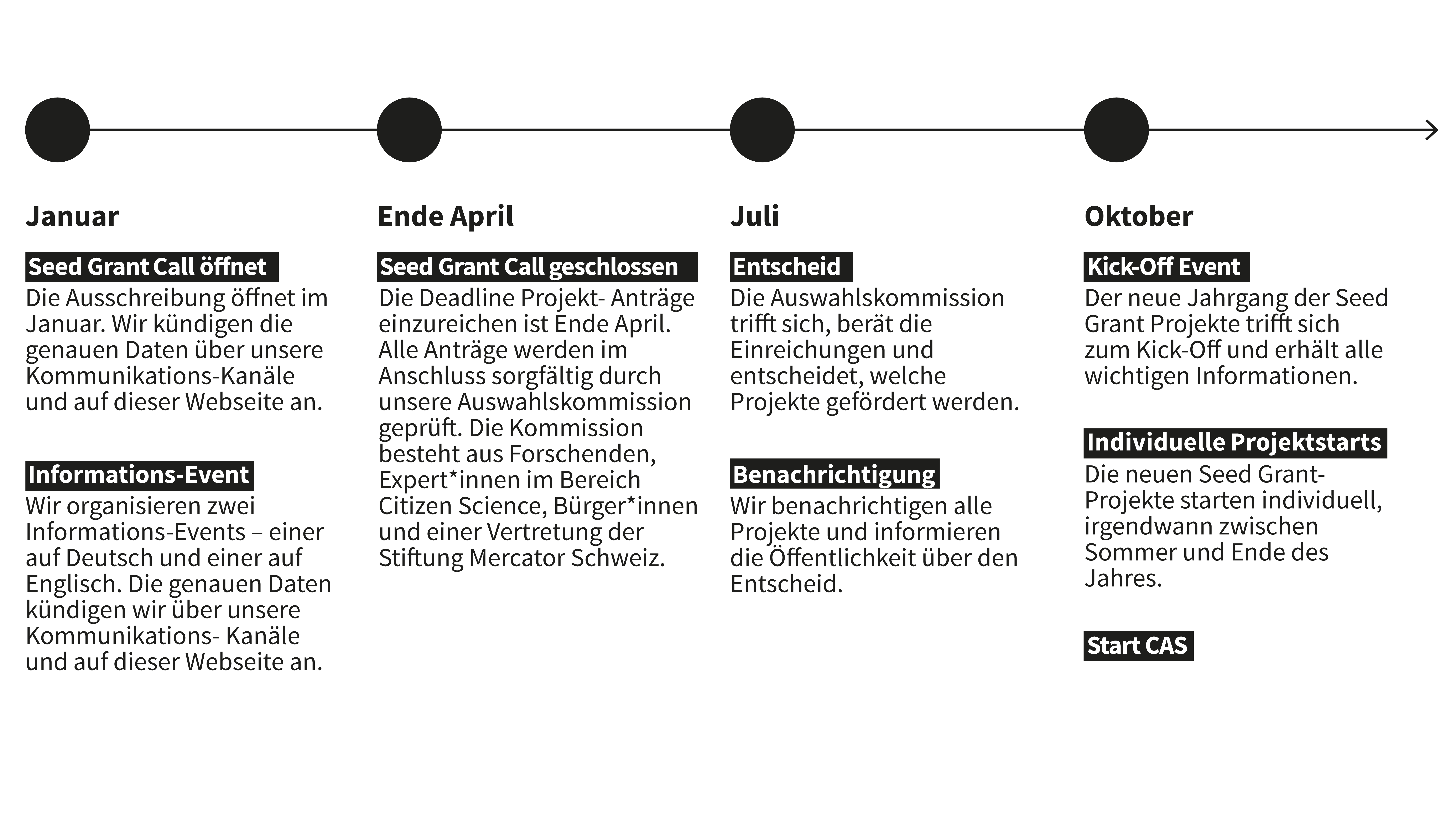 Die Ausschreibung öffnet im Januar. Wir organisieren zwei Informations-Events – einen auf Deutsch und einen auf Englisch. Die genauen Daten kündigen wir über unsere Kommunikations- Kanäle und auf dieser Webseite an.